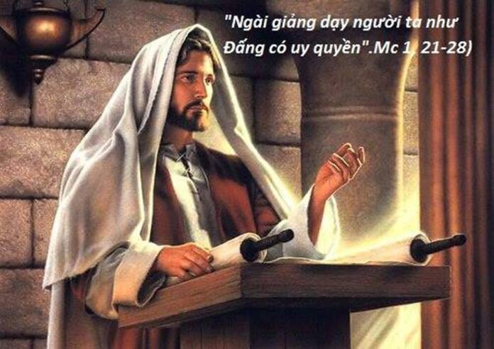 Khi Đức Giêsu giảng dạy xong, dân chúng sửng sốt về lời giảng dạy của Người, vì Người giảng dạy như một Đấng có thẩm quyền, chứ không như các kinh sư của họ (Mt 7, 28-29). Vì sao khi nghe Chúa Giêsu giảng dạy, mọi người lại sửng sốt đến như vậy? Đức Thánh Cha Phanxicô trả lời cho chúng ta: Bởi vì đây không phải là những lời nói bình thường, những lời nói này không giống như những lời nói mà họ vẫn thường được nghe trước đó. Vì chưng, các kinh sư giảng dạy, nhưng họ lại không có được quyền hành cá nhân nào cả. Còn Đức Giêsu giảng dạy có uy quyền, và như thế, Người tỏ ra Người là đấng được Thiên Chúa sai đến chứ không phải như một người bình thường, một con người phải đặt nền tảng giáo huấn của mình dựa trên các truyền thống có trước. Đức Giêsu có toàn quyền[3]. Đức Giêsu là vị ngôn sứ được ông Môsê nói đến trong bài đọc 1: Từ giữa anh em, trong số các anh em của anh em, Đức Chúa, Thiên Chúa của anh em, sẽ cho xuất hiện một ngôn sứ như tôi để giúp anh em; anh em hãy nghe vị ấy (Đnl 18,15). Ta sẽ đặt những lời của Ta trong miệng người ấy, và người ấy sẽ nói với chúng tất cả những gì Ta truyền cho người ấy (Đnl 18,18). Vậy bây giờ ngươi hãy đi, chính Ta sẽ ngự nơi miệng ngươi, và Ta sẽ chỉ cho ngươi phải nói những gì” (Xh 4,12). Thánh Gioan làm nổi bật mối tương đồng này khi viết Lề Luật đã được Thiên Chúa ban qua ông Môsê, còn ân sủng và sự thật, thì nhờ Đức Giêsu Kitô mà có (Ga 1,17). “Đấng mà sách Luật Môsê và các ngôn sứ nói tới, chúng tôi đã gặp: đó là ông Giêsu, con ông Giuse, người Nadarét” (Ga 1,45). Nếu các ông tin ông Môsê, thì hẳn các ông cũng tin tôi, bởi lẽ ông ấy đã viết về tôi (Ga 5,46). Và lời rao giảng các tông đồ xác minh chính Chúa Giêsu là Đấng đã được Đệ Nhị Luật tiên báo (Cv 3,22; 7,37). Chúa Giêsu nói cho chúng ta biết những lời Ngài nói không phải tự mình nói ra nhưng là chính Chúa Cha, Ngài nói: “Không phải tôi tự mình nói ra, nhưng là chính Chúa Cha, Đấng đã sai tôi, truyền lệnh cho tôi phải nói gì, tuyên bố gì. Và tôi biết: mệnh lệnh của Người là sự sống đời đời. Vậy, những gì tôi nói, thì tôi nói đúng như Chúa Cha đã nói với tôi” (Ga 12,49-50).