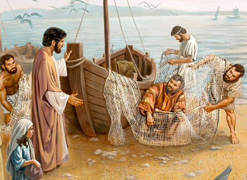 Ngay sau lời rao giảng, Chúa Giêsu kêu gọi các môn đệ đầu tiên: Phêrô, Anrê, Giacôbê và Gioan. Tiếng gọi của Người thật đơn sơ: “Hãy theo Thầy, Thầy sẽ làm cho anh em trở thành những kẻ lưới người như lưới cá” (Mt 4,19). Điều đáng kinh ngạc là các ông đã lập tức bỏ lại mọi sự: chài lưới, thuyền bè, và cả những mối dây ruột thịt, để bước theo Chúa. Cuộc đời các ông từ đây rẽ sang một hướng hoàn toàn mới, không còn thuộc về chính mình, nhưng thuộc trọn về Đấng đã gọi các ông.
