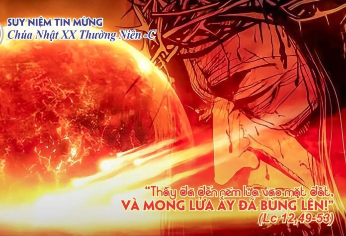 Trong thư Do thái, thánh Phaolô mời gọi chúng ta hãy để lửa tình yêu thanh luyện, theo gương Chúa Kitô.Thật vậy Chúa Giêsu không chỉ là người ném lửa vào thế gian. Chúa chính là ngọn lửa. Chúa để lửa cháy bùng lên trong bản thân Người. Gây nên những chia rẽ trầm trọng.