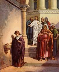 Đức Giê-su ngồi đối diện với thùng tiền dâng cúng cho Đền Thờ. Người quan sát xem đám đông bỏ tiền vào đó ra sao. Có lắm người giàu bỏ thật nhiều tiền. Cũng có một bà goá nghèo đến bỏ vào đó hai đồng tiền kẽm, trị giá một phần tư đồng xu Rô-ma Đức Giê-su liền gọi các môn đệ lại và nói: “Thầy bảo thật anh em: bà goá nghèo này đã bỏ vào thùng nhiều hơn ai hết. Quả vậy, mọi người đều rút từ tiền dư bạc thừa của họ mà đem bỏ vào đó; còn bà này, thì rút từ cái túng thiếu của mình mà bỏ vào đó tất cả tài sản, tất cả những gì bà có để nuôi sống mình.”