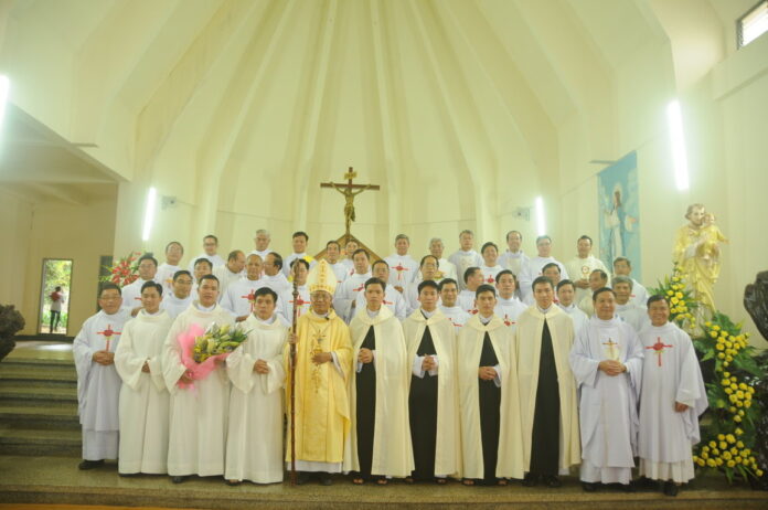 Thánh lễ trọng thể do Viện phụ Vianney Nguyễn Tri Phương chủ tế và với tư cách bề trên đại diện Giáo hội nhận lời tuyên khấn của các anh em trong cộng đoàn. Cùng đồng tế với ngài có quí linh mục khách, đại diện quí linh mục trong hạt Đơn Dương và là các linh mục trong cộng đoàn Đan viện. Về phía cộng đoàn phụng vụ, có sự hiện diện của quí tu sĩ nam nữ thuộc nhiều Hội dòng, quí ông bà cố và đông đảo thân nhân đến từ gia đình các tân khấn sinh.
