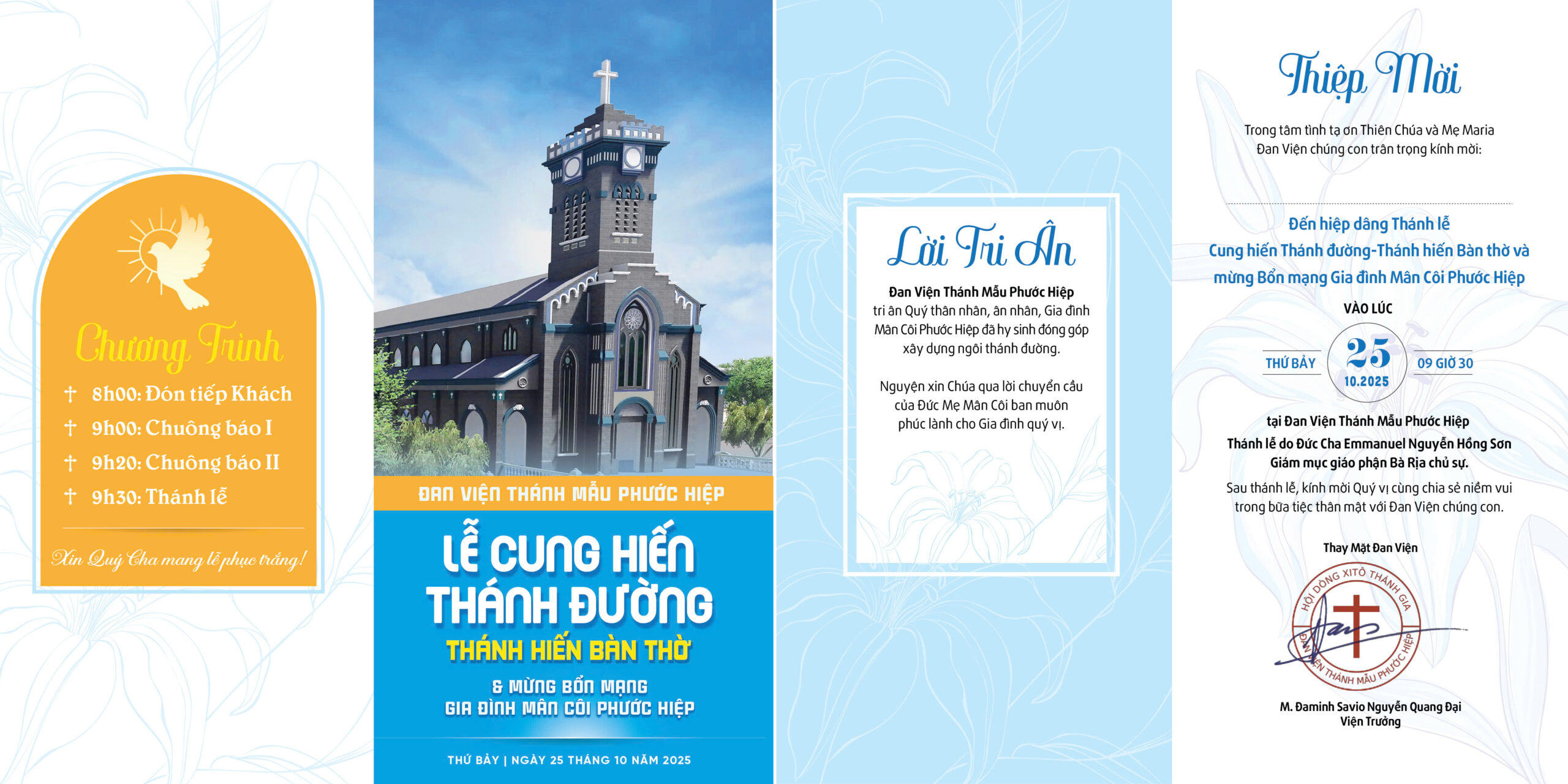 Đan Viện Thánh Mẫu Phước Hiệp: Thiệp mời lễ Cung Hiến Thánh Đường – Thánh Hiến Bàn Thờ và Mừng Bổn Mạng Mân Côi Phước Hiệp