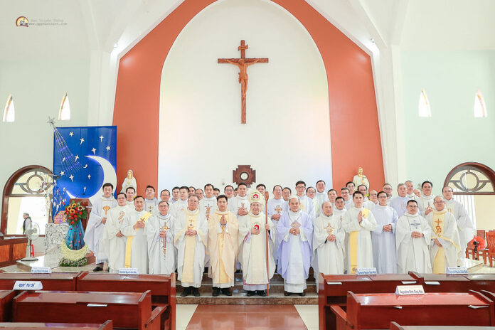 Sáng nay, vào lúc 8g30, Thứ Sáu, ngày 27 tháng 12 năm 2024, tại Nguyện Đường Đan viện Xitô Thánh Mẫu Châu Thủy, Đức cha Giuse Đỗ Mạnh Hùng, Giám mục Giáo Phận Phan Thiết đã chủ tế Thánh lễ phong chức phó tế cho 2 đan sĩ và phong chức linh mục cho 1 đan sĩ phó tế của Đan viện. Cùng đồng tế có Viện phụ Giuse Hoàng Văn Thắng, Bề trên Đan viện Xitô Châu Thủy, cha Gregorio Nguyễn Xuân Hoàng Viện, Viện phụ Đan viện An Phước, Đức ông Phêrô Nguyễn Chí Thiết, cha Tổng Đại diện Giáo phận Phan Thiết, nguyên Viện phụ Boscô, quý cha Hạt trưởng, quý Bề trên, một số linh mục trong và ngoài Giáo phận, quý linh mục Hội Dòng Xitô Thánh Gia.