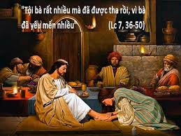 – Theo tác giả Luca, một phụ nữ tội lỗi trong thành phố, đã khóc trên chân Chúa và lấy tóc mình mà lau, hôn chân và xức dầu chân Chúa.