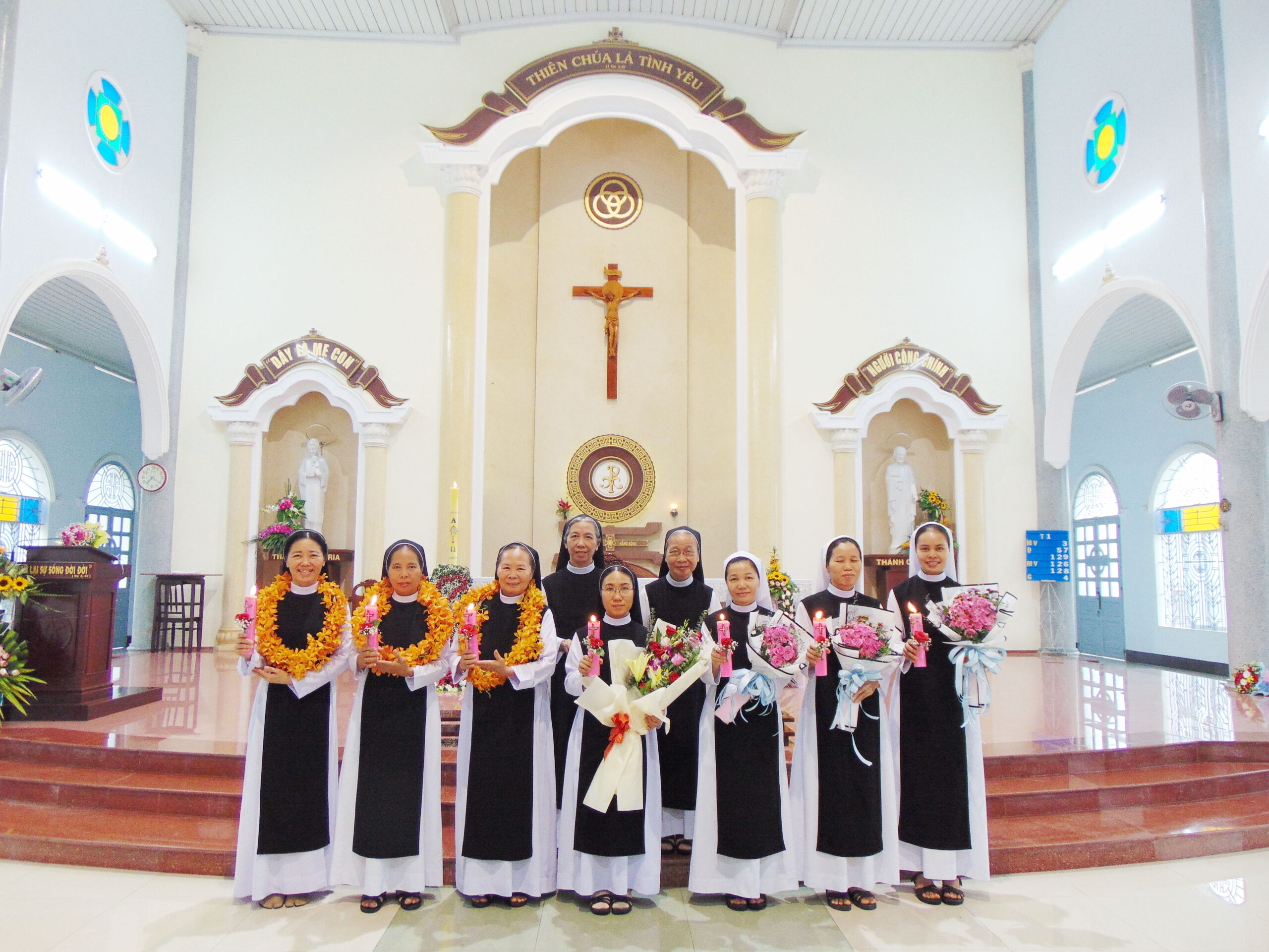 Ngày 28-11-2020 là một ngày Hồng Ân trọng đại đối với Đan Viện Phước Thiên chúng con, bởi vì có sự hiện diện của Viện phụ trực phụ chủ tế M. Vinh sơn Liêm – Nguyễn Hồng Thanh, quý viện phụ, quý bề trên, quý cha, quý tu sĩ nam nữ và toàn thể quý khách, cùng quy tụ về đây với chúng con để mừng lễ Ngân khánh khấn dòng của quý chị: