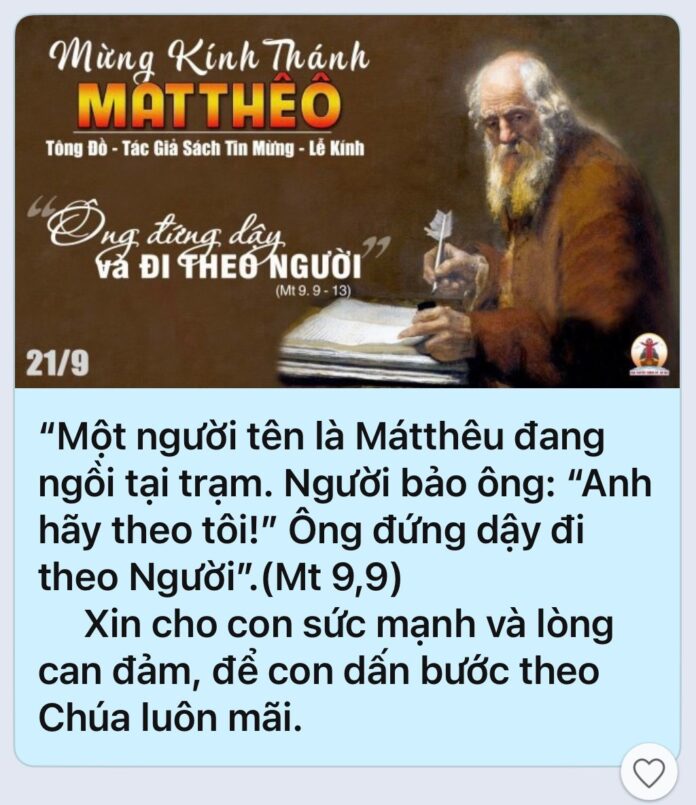 Lễ Thánh Matthêu – Ngày 21 tháng 9: Eph 4:1-7, 11-13; Mt 9:9-13.