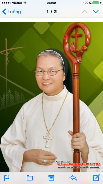 - Xin chị nhận lấy chiếc gậy chủ chăn và hãy ân cần săn sóc các chị em đã được trao phó cho chị và phải trả lẽ trước mặt Chúa.