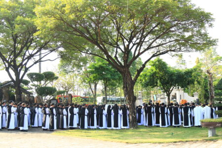 Trong bầu khí linh thiêng của Chúa Nhật lễ Thánh Gia Thất, ngày Bổn Mạng của Hội Dòng Xitô Thánh Gia năm nay nhằm ngày 28.12.2025, hơn 800 Đan sĩ nam nữ đến từ 12 Đan viện thuộc Hội Dòng Xitô Thánh Gia đã hân hoan quy tụ về Đan viện Phước Sơn – Nhà Tổ của Hội Dòng, nơi có lăng mộ Cha Tổ Phụ Henri Denis Thuận đang an nghỉ.
