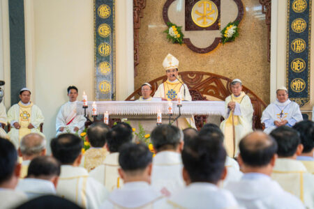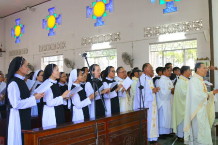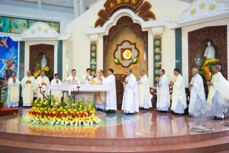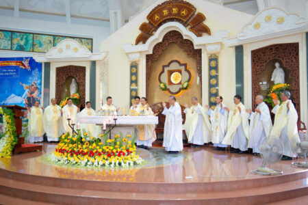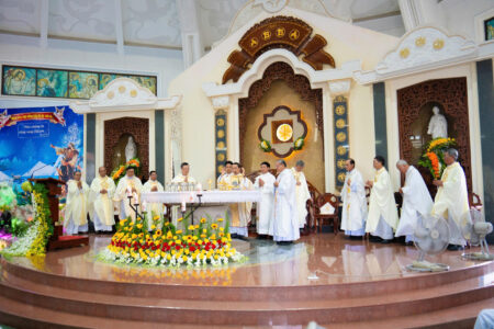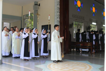 Thánh Lễ được cử hành long trọng trong bầu khí sốt sắng, hiệp nhất. Trong ngày lễ Thánh Gia Thất – Bổn Mạng Hội Dòng, hy lễ tạ ơn dâng lên Thiên Chúa như một lời tuyên xưng: chính Ngài là trung tâm và là điểm quy chiếu của mọi bước đường “đi chung”.