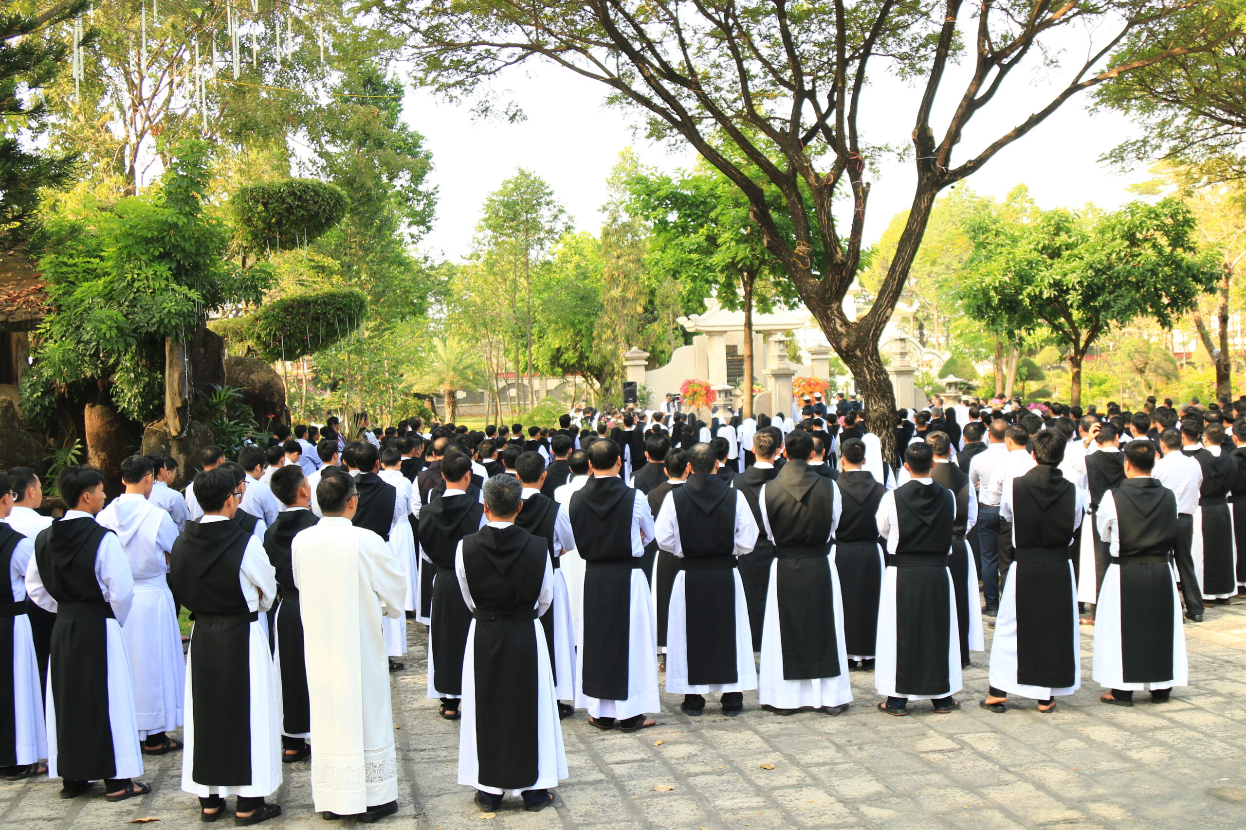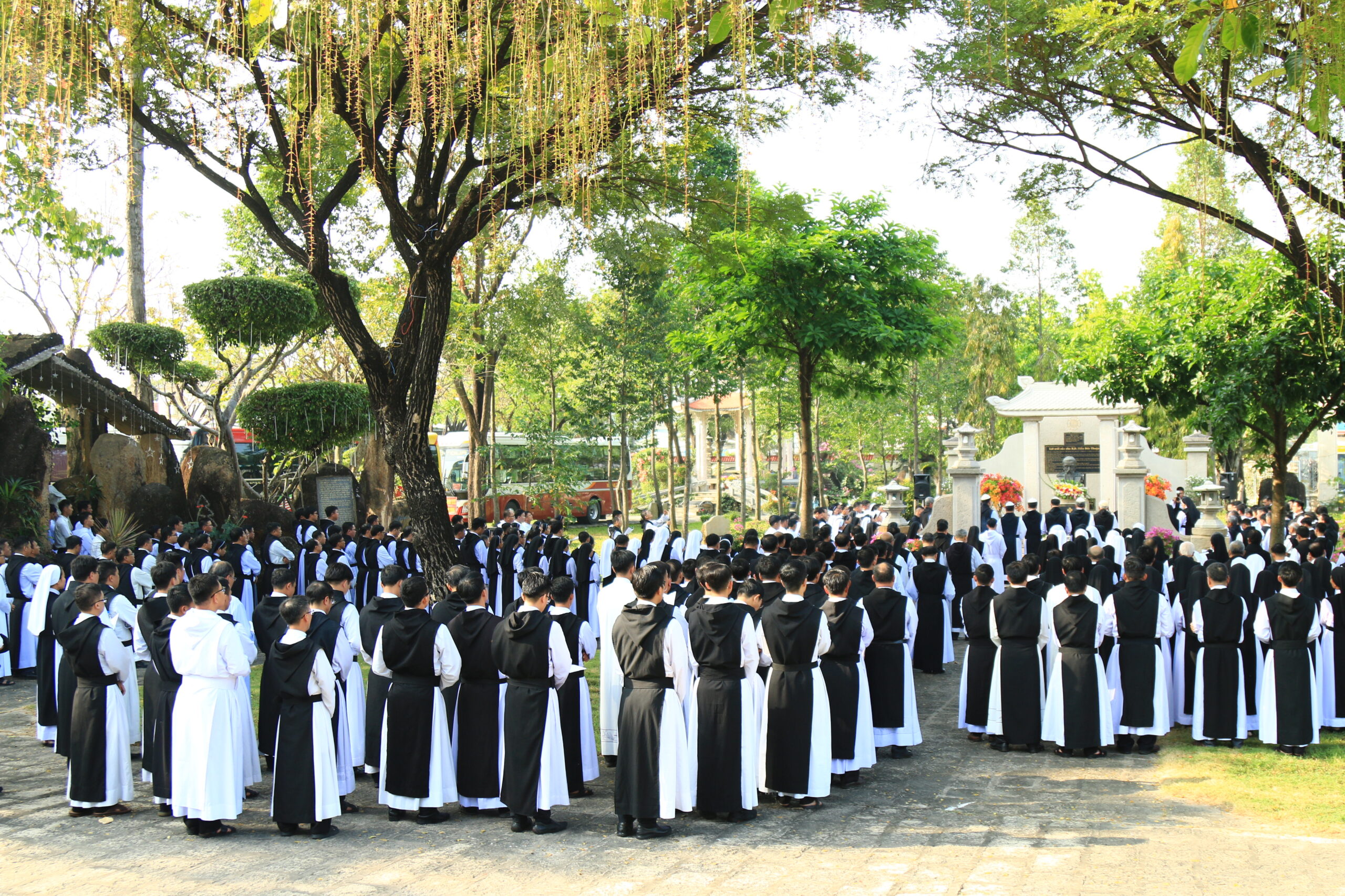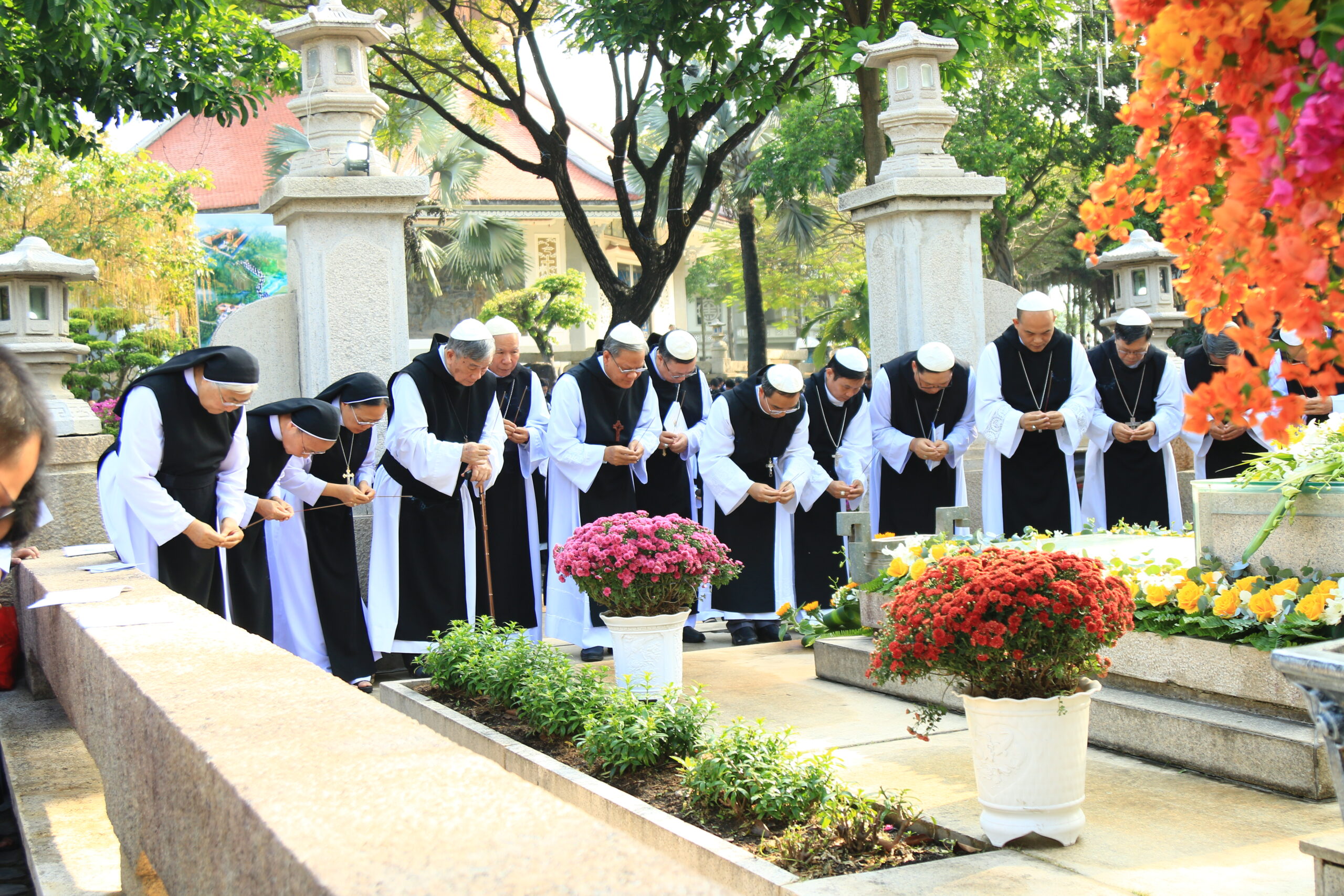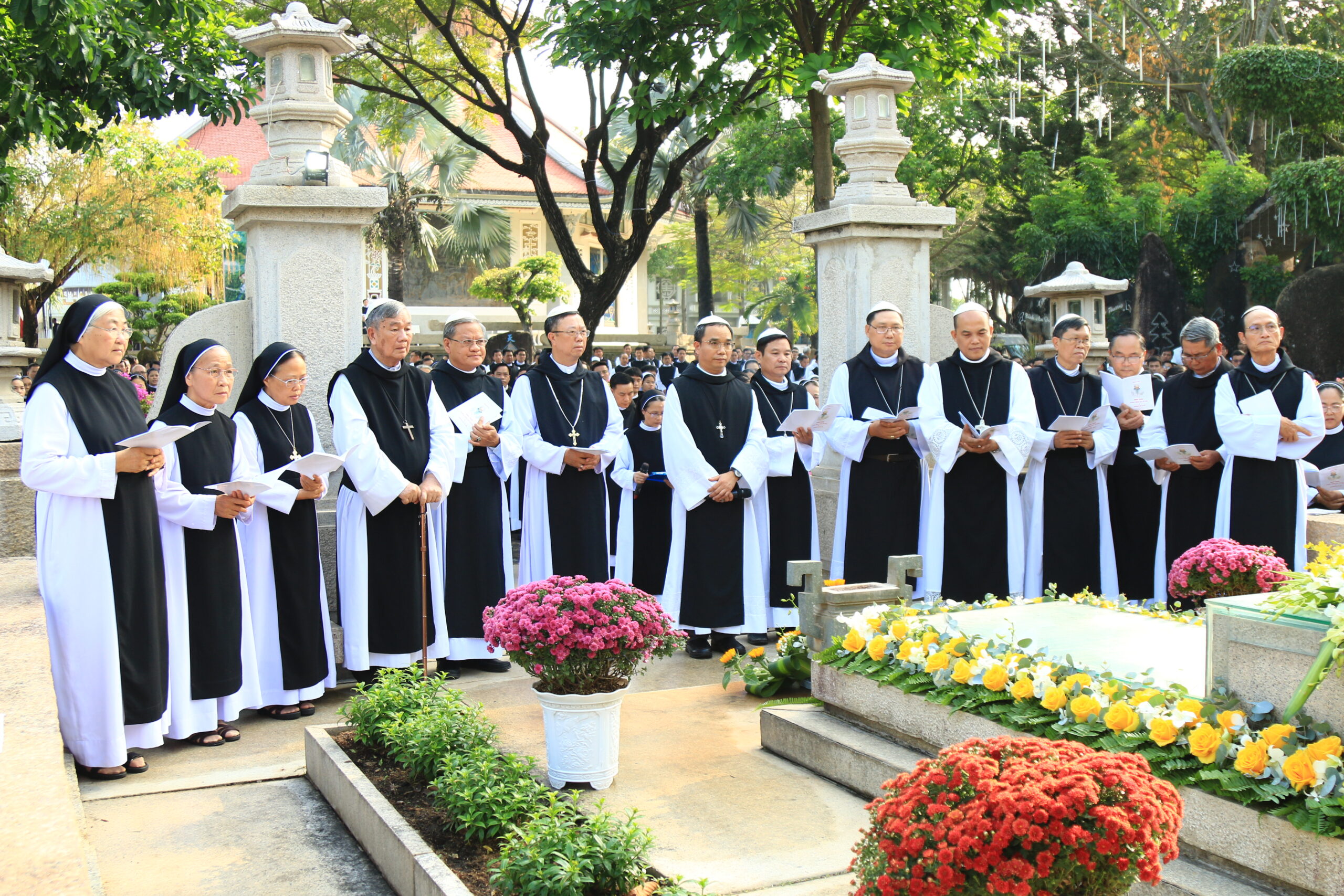 Trước lăng mộ Cha Tổ Phụ, cộng đoàn cùng nhau cử hành nghi thức tưởng niệm, lắng đọng trong thinh lặng và tri ân. Đó là giây phút trở về cội rễ, nhớ lại hành trình đức tin đầy hy sinh và phó thác của những bậc tiền nhân.