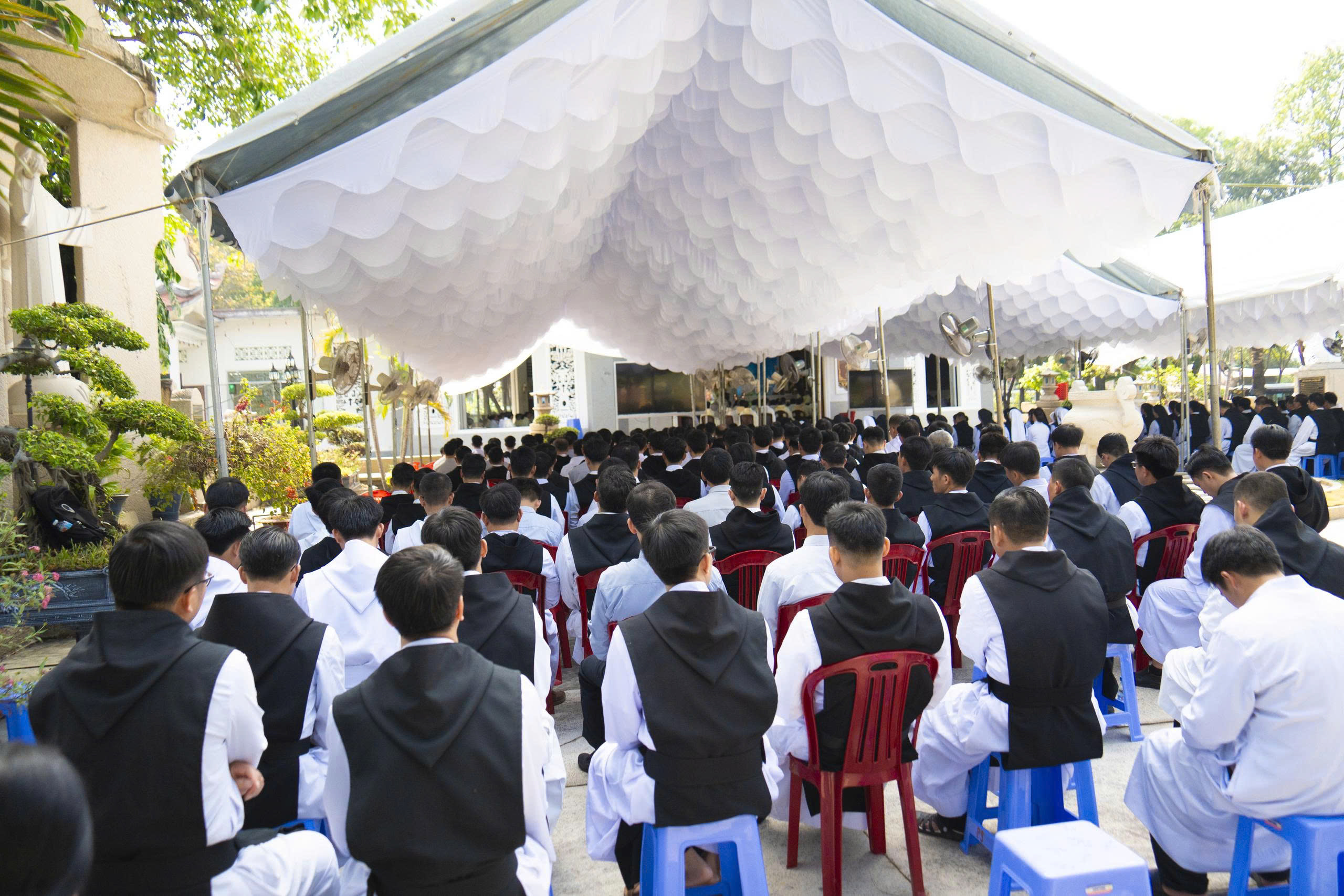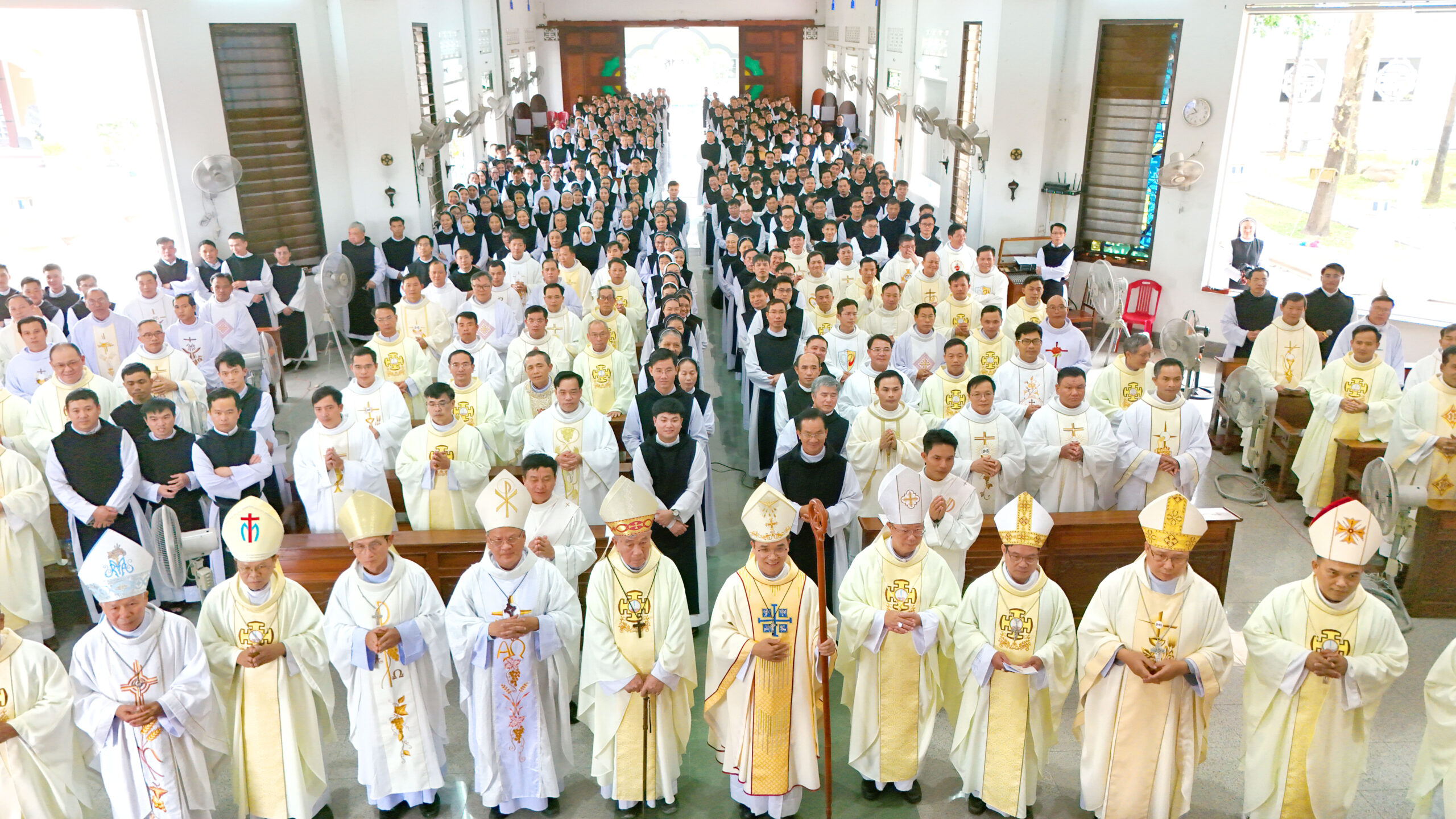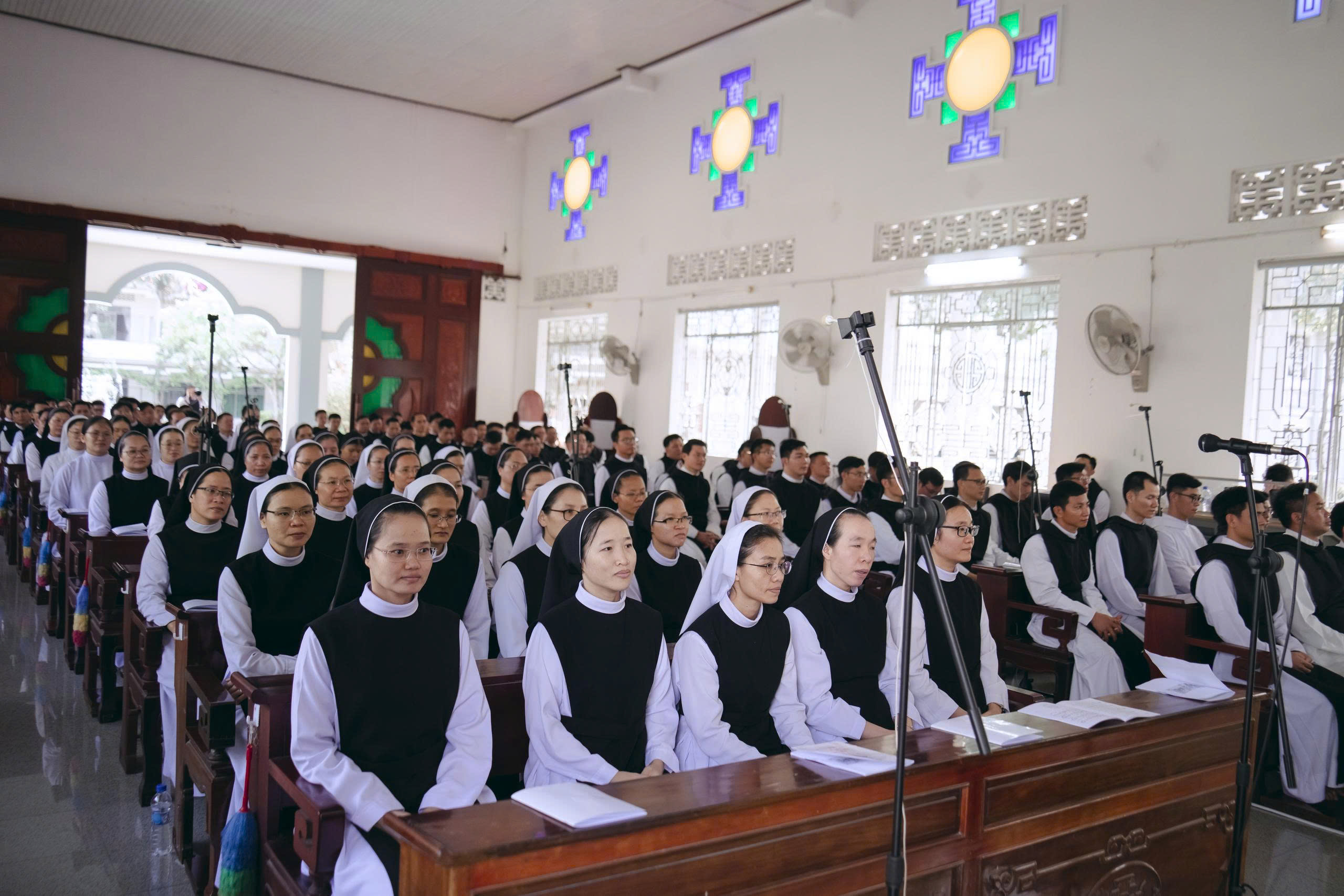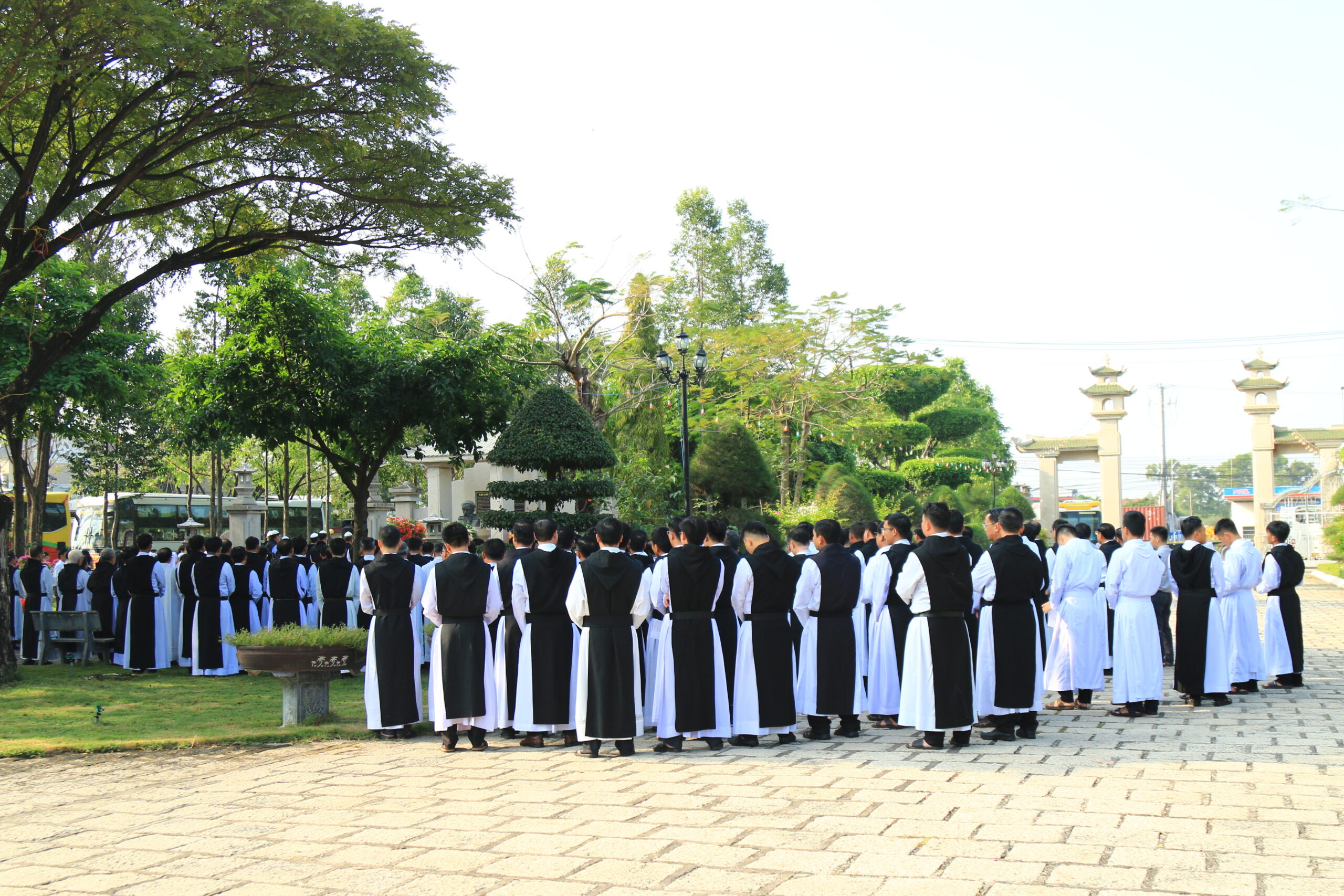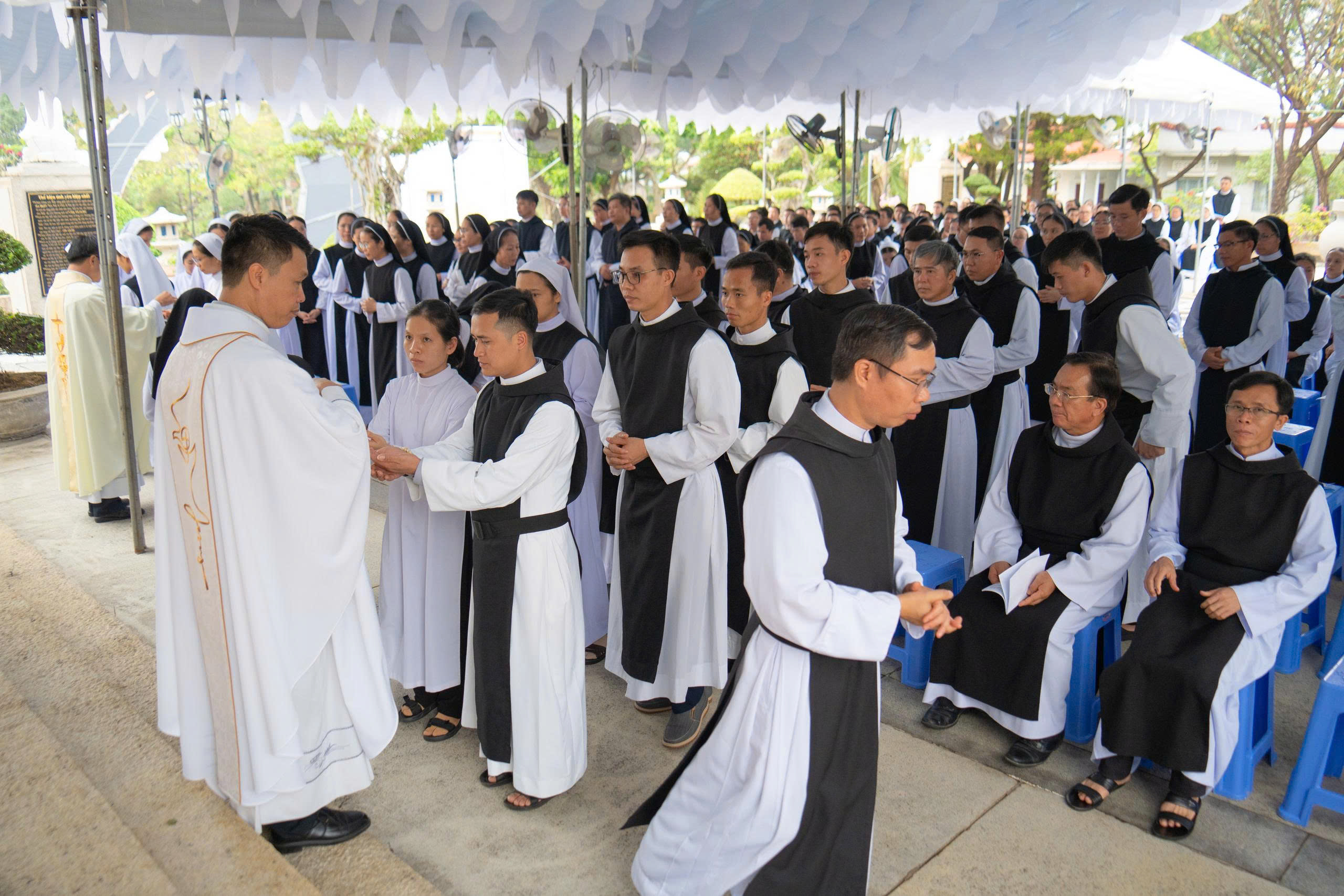 Cộng đoàn Phước Sơn long trọng đón tiếp quý Viện phụ, quý Viện Mẫu, quý Viện trưởng cùng toàn thể anh chị em Đan sĩ từ khắp mọi miền. Niềm vui gặp gỡ lan tỏa trong từng ánh mắt, nụ cười và cái bắt tay thân tình của những người cùng chung một nguồn mạch.