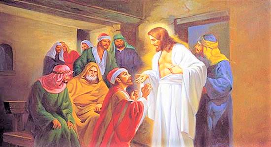 Lần nữa, Đức Giêsu lại hiện ra với các môn đệ. Lần này Tôma cũng có mặt. Đức Giêsu chinh phục lòng tin của Tôma bằng cách chiều theo đòi hỏi của ông là được đụng vào các vết thương của Người. Lần hiện ra này, Đức Giêsu đã mời gọi ông hãy đặt ngón tay vào lỗ đinh, hãy nhìn xem tay Thầy, hãy đưa tay mà đặt vào cạnh sườn Thầy.