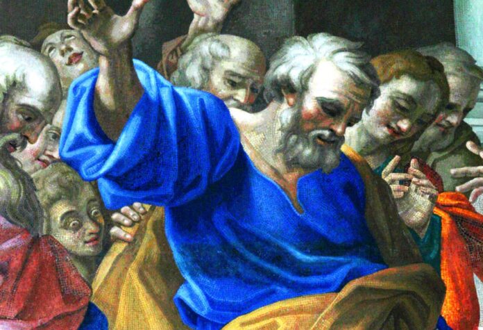 Bài đọc thứ nhất trích từ sách Công Vụ Tông Đồ kể lại chuyện Phêrô can đảm rao giảng cho người Do Thái. Người Do Thái bị coi là đối tượng giết Đức Giêsu. Phêrô đã một phen sợ người Do Thái. Sau cái chết của Thầy mình, Tin Mừng kể lại rằng: “Các ông vào phòng đóng cửa vì sợ người Do Thái.” Vậy mà sau khi lãnh nhận Chúa Thánh Thần, Phêrô đứng lên dõng dạc rao giảng cho người Do Thái về Đức Giêsu, Đấng mà người Do Thái đã giết và cũng là Đấng mà Phêrô cũng đã từng chối đến ba lần.