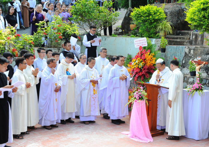 “Trọng kính quý Viện phụ, viện mẫu, quý bề trên, Kính thưa Cha Tổng Đại Diện Giáo phận Phan Thiết, quý cha, quý tu sĩ nam nữ và quý ông bà cố của các tân khấn sinh và toàn thể anh chị em,