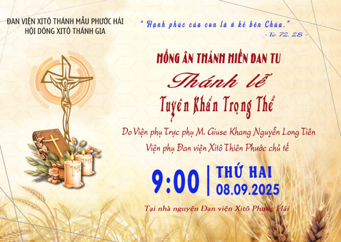 Trang chủĐan ViệnNữ Phước Hải Nữ Phước Hải Thiệp mời Thánh Lễ Tuyên Khấn Trọng Thể 2025 Bởi : Phước Hải 4 Tháng 9, 2025 InFacebookXPinterestWhatsApp 🔊 0:00 1.0x ⬇ 🗣️ 🎙️ Nữ miền Nam🎙️ Nam miền Nam Bài trướcThứ Năm, Tuần XXII Thường niên (Lc 5,1-11) “Dựa vào Lời Thầy, con sẽ thả lưới”Bài tiếp theoThứ Sáu, Tuần XXII Thường Niên (Lc 5,33-39) “Tấm lòng mới – Rượu mới – Niềm vui mới” Chia sẻ InFacebookXPinterestWhatsApp Bài viết liên quan Châu Sơn NQ Chúa nhật IV PS – A: Mục tử và kẻ cướp (Đức TGM Giuse Ngô Quang Kiệt) Suy niệm Chúa Nhật - Lễ Trọng Chúa Nhật IV Phục Sinh – Trở thành “Cửa” và “Mục tử” cùng với Đức Kitô (Cv 2,14a.36-41; 1 Pr 2, 20b-25; Ga 10,1-10) Suy niệm Chúa Nhật - Lễ Trọng Chúa nhật IV, Phục sinh, Năm A, Ga 10,1-10 Chúa chiên nhân lành BÀI VIẾT MỚI Châu Sơn NQ Chúa nhật IV PS – A: Mục tử và kẻ cướp (Đức TGM Giuse Ngô Quang Kiệt) Suy niệm Chúa Nhật - Lễ Trọng Chúa Nhật IV Phục Sinh – Trở thành “Cửa” và “Mục tử” cùng với Đức Kitô (Cv 2,14a.36-41; 1 Pr 2, 20b-25; Ga 10,1-10) Suy niệm Chúa Nhật - Lễ Trọng Chúa nhật IV, Phục sinh, Năm A, Ga 10,1-10 Chúa chiên nhân lành Suy niệm hằng ngày Thứ Bảy Tuần III Phục Sinh, Ga 6,51.60-69 “Đây là mầu nhiệm đức tin” Suy niệm hằng ngày Thứ Sáu Tuần III Phục Sinh, Ga 6, 52-59 Chúa và con nên một Xem thêm