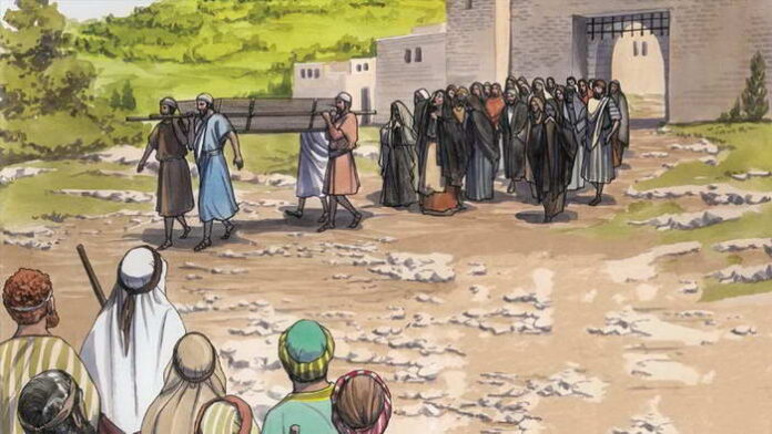 Kinh thánh nói rõ rằng Thiên Chúa không vui gì trong cái chết của bất cứ ai (x. Ed 33,11). Ngài mong muốn sự sống, không phải cái chết. Thế nên, Chúa Giêsu đã không ngại sự rủi ro nghiêm trọng khi tiếp cận với đám tang, vì việc tiếp xúc với xác chết khiến người ta ra ô uế theo cách nhìn của người Do Thái thời đó. Nhưng sự đụng chạm của Chúa Giêsu đã khôi phục lại cuộc sống, mang lại tự do trọn vẹn cho linh hồn và thể xác. Ngài là Chúa không chỉ của người sống mà còn của người chết. Khi Chúa Giêsu đưa người thanh niên đã chết này trở lại với cuộc sống, Ngài đã làm như vậy vì tình yêu và lòng trắc ẩn đối với người góa phụ.