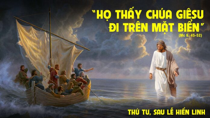 Tuy Đức Giêsu đang cầu nguyện với Chúa Cha, nhưng không vì thế mà Ngài quên các môn đệ đang phải chèo chống giữa sóng gió dữ dội của biển cả. Ngài vẫn dõi theo họ với ánh mắt yêu thương và quan phòng. Ngài xuất hiện và đưa các môn đệ cập bến bình an.
