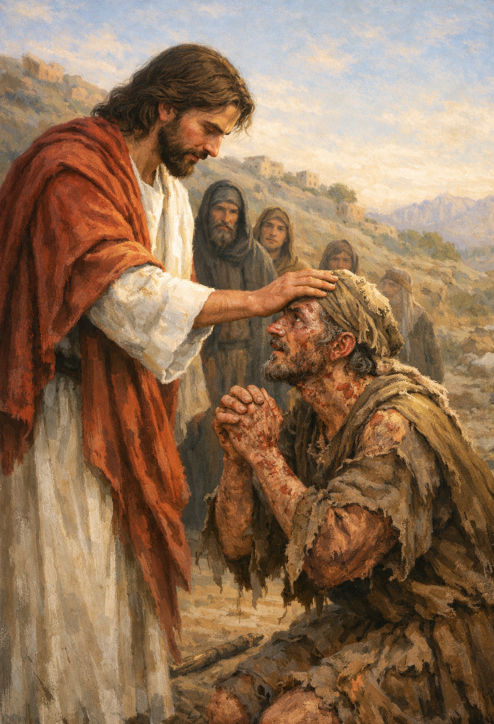 Chúa Giê-su đã không quay lưng. Tin Mừng nói một chi tiết rất cảm động: Người chạnh lòng thương, giơ tay chạm đến anh và nói: “Tôi muốn, anh hãy được sạch.” Cử chỉ chạm vào người phong hủi là điều không ai dám làm, bởi theo luật, ai chạm vào người phong hủi sẽ trở nên ô uế. Nhưng Chúa Giê-su không sợ bị lây ô uế; trái lại, chính sự thánh thiện và lòng thương xót của Ngài đã thanh tẩy, chữa lành và phục hồi phẩm giá cho con người đau khổ ấy.